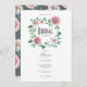 Invitation à la douche nuptiale peinte à la main avec feuilles verts et fleurs modernes sur un arrière - plan gris. Oeuvre originale de Caroline Bonne Müller.