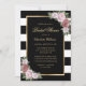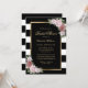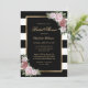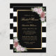 Elégante invitation à la douche nuptiale rayée noire et blanche avec fleurs roses et verdure. Éléments correspondants disponibles. Invitation à la douche nuptiale florale et noire. Invitation à la douche nuptiale noire et blanche. Invitation à la douche nuptiale noire et or.