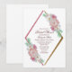 Une élégante invitation à la douche nuptiale à fleurs géométriques, rose vif et or.