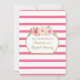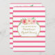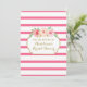Invitations de douche nuptiale personnalisées en motif rose chaud et rayures blanches, fleurs d'aquarelle rose vintage et détails or.