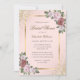 Élégante invitation à la douche nuptiale rose et or floral avec des fleurs roses et pêche et verdure encadrant les détails de la douche à l'intérieur d'un cadre doré orné de confettis dorés. Éléments correspondants disponibles. Invitation à la douche nuptiale florale. Invitation à la douche nuptiale rose et or. Invitation à la douche nuptiale blush et or. Personnalisez facilement en ligne.