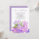 Elégante et simple invitation à la douche nuptiale avec fleur de géranium violet rose et texte de calligraphie dynamique.