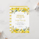 Invitations de douche nuptiale sur mesure et abordables. Ce design d'été frais a une bordure florale aquarelle avec des fleurs jaune vif et de la verdure. Personnalisez le modèle avec les détails de votre événement. Reverse side a un motif rayé jaune peint ou utilisez l'espace pour ajouter du texte et des photos supplémentaires. Cliquez sur Customiser pour choisir n'importe quelle couleur arrière - plan et modifier les polices de texte et les couleurs pour créer une invitation unique à la douche nuptiale printemps ou été.