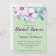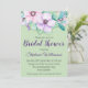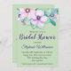 Une jolie faire-part nuptiale verte à la menthe pastel, agrémentée d'un joli motif floral de fleurs roses et violettes avec baies violettes sur le dessus de la carte. Le même design floral est à l'envers, seulement dans une plus grande taille. Tous les détails (y compris la police, la couleur et la taille des polices, etc.) peuvent être changés dans les options de personnaliser ci-dessus.