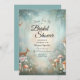 Invitation Fête des mariées forestière turquoise et pêche enc