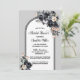 Cette élégante invitation à la douche nuptiale à arche florale noire fumée allie la beauté intemporelle du noir à l'allure délicate des flores d'aquarelle, créant une invitation vraiment enchanteresse qui donne le ton parfait pour votre douche nuptiale. Le texte personnalisable vous permet de personnaliser l'invitation avec votre nom, date, emplacement et détails du registre.