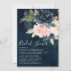 Belle invitation à la douche nuptiale fleurie boho avec aquarelle peinte à la main graphismes floraux / roses dans les tons riches de bleu marine et rose rousse / pêche et charmante écriture de style manuel police. Veuillez me contacter pour toute aide sur la personnalisation ou si vous avez besoin d'un autre produit avec ce design.