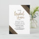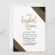Un luxe moderne blanc, bleu marine et or comprend un élégant design géométrique doré, blanc et bleu marine, avec une typographie manuscrite imprimée en argent. Cette invitation à la douche nuptiale mariage glam est l'imprimé parfait pour tout événement Mariage de mariée et mariée. Customisez ce design avec vos détails et monogramme initial.