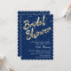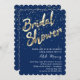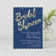 Invitation Fête des mariées Gold Confetti Script Blue Navy