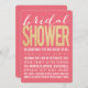 BELLE typographie moderne couleur rose et or saumon, mais avec un look et une sensation vintage doux et sublime. Ajoutez votre propre texte au modèle pour créer cette carte à plat populaire, de qualité, professionnelle, imprimée brillante invitation de douche nuptiale. Magnifique arrière - plan de papier de couleur douce avec une superbe typographie dorée.