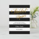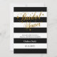 Invitations de douche nuptiale 5x7. Elégante bande noire et blanche avec lettrage doré. Cette invitation nuptiale sera un succès avec votre invité de fête. Customisez l'avant et l'arrière avec les détails de votre événement, le style de police, la couleur de police. 100% Personnalisable. Prêt à remplir la ou les cases ou Cliquez sur le bouton IT de la PERSONNALISER pour modifier, déplacer, supprimer ou ajouter le texte ou les graphiques. Fabriqué avec des graphiques vectoriels haute résolution pour une impression professionnelle. REMARQUE : (Tous les modèles de produit zazzle sont des "impressions" sauf indication contraire) Si vous avez des questions sur ce produit, veuillez me contacter à siggyscott@comcast.net ou visiter mon lien de magasin : http://www.zazzle.com/designsbydonnasiggy?rf=238713599140281212 (Copier et Coller) Je serai heureux de vous aider. Merci pour le support et l'arrêt par mon magasin -DesignsbyDonnaSiggy