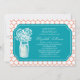 Parfait pour une Fête des mariées de style Country / Wedding shower ou peut-être que vous aimez juste Mason Jars pour n'importe quel événement! Design motif branché en nid d'abeille avec Mason Jar rempli de fleurs de dentelle de la reine Anne. Un Arrière - plan Coral Honeypeb au centre turquoise. Si vous avez des questions sur ce design ou désirez un changement de couleur, envoyez-moi un courriel à paula@labellarue.com Vérifiez aussi que les cartes de Mariage, INVITATION, RSVP, RÉCEPTION et CHAISES d'INVITATION correspondent !