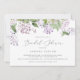 Cette invitation à la douche nuptiale horizontale lilas rustique est parfaite pour un wedding shower de printemps ou d'été. Le design floral romantique et élégant présente des fleurs sauvages lilas violets d'aquarelle aux allures de jardin boho.