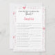 Si vous êtes à la recherche d'un jeu de douche nuptiale amusant et engageant que vos invités aimeront, ne cherchez pas plus loin que "How Well Do You Know the Bride?" Ce jeu imprimable est une excellente façon de tester la connaissance de vos invités sur la future mariée, et il est sûr d'être un succès à toute douche nuptiale. Ce jeu de douche nuptiale est doté d'une belle bordure de coeurs rouges et blancs qui ajoute une touche d'élégance au design. La conception de la bordure est aussi le fond complet du jeu de douche nuptiale, ce qui le rend super joli de tous les angles. Le nom de la future mariée est listé dans un rouge assez fané sous la question "How Well Do You Know The Bride ?", ajoutant une touche personnelle au jeu. Le jeu lui-même est blanc avec du texte noir, ce qui le rend facile à lire et à customiser. Il y a 15 questions incluses dans le jeu, et elles sont toutes entièrement personnalisables, de sorte que vous pouvez adapter le jeu à la personnalité et aux intérêts uniques de la future mariée. Que vous choisissiez d'imprimer le jeu vous-même ou de les commander professionnellement imprimé, ce jeu de douche nuptiale est sûr d'être un succès. C'est un excellent moyen de faire participer vos invités à la célébration et de tester leur connaissance du futur marié. Donc si vous cherchez un jeu de douche de nage amusant et engageant, ne cherchez pas plus loin que "How Well Do You Know the Bride?"
