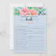 Vous cherchez une façon unique et amusante de célébrer la future mariée à sa douche nuptiale? Ne cherchez pas plus loin que "Connaissez-vous bien la mariée ?" Ce jeu de douche nuptiale imprimable ou imprimé professionnellement présente un design époustouflant avec des fleurs roses et de la verdure au sommet, créant un look magnifique et féminin qui est parfait pour toute douche nuptiale. En haut du jeu, le nom de la future mariée est listé sous la question "Comment connaissez-vous l'épouse ?", écrite dans une jolie couleur rose qui correspond aux fleurs. Le reste du jeu est conçu dans une belle nuance de bleu avec du texte noir, ce qui le rend facile à lire et à comprendre. Avec 15 questions personnalisables, vous pouvez adapter le jeu aux intérêts et à la personnalité de la mariée, ce qui en fait un ajout unique et personnalisé à sa journée spéciale. Ce jeu de douche nuptiale est le moyen idéal pour faire participer tout le monde à la célébration et tester la connaissance des amis et des membres de la famille les plus proches de la mariée. C'est une façon amusante et interactive de créer des souvenirs durables et de réunir tout le monde pour célébrer la future mariée. Que vous choisissiez d'imprimer le jeu vous-même ou de commander des copies imprimées professionnellement, "Connaissez-vous bien la mariée ?" est sûr d'être un succès à toute douche nuptiale. Dans l'ensemble, "Connaissez-vous bien la mariée ?" est un complément incontournable à toute célébration de la douche nuptiale. Avec son design époustouflant, ses questions personnalisables et son gameplay engageant, il est sûr de créer une expérience mémorable pour tous les participants. Alors pourquoi ne pas ajouter ce jeu excitant à vos plans de douche nuptiale aujourd'hui et créer un jour que la mariée chérira pour toujours!