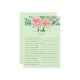 Célébrez la future mariée de manière amusante et interactive avec "Connaissez-vous bien la mariée ?" Ce jeu de douche nuptiale imprimable ou imprimé professionnellement présente un beau design avec des fleurs roses et de la verdure au sommet, créant un look époustouflant et féminin qui est parfait pour toute douche nuptiale. En haut du jeu, le nom de la future mariée est listé sous la question "Comment connaissez-vous l'épouse ?", écrite dans une jolie couleur rose qui correspond aux fleurs. Le reste du jeu est conçu dans une teinte de vert vif avec du texte noir, ce qui le rend facile à lire et à comprendre. Avec 15 questions personnalisables, vous pouvez adapter le jeu aux intérêts et à la personnalité de la mariée, ce qui en fait un ajout unique et personnalisé à sa journée spéciale. Ce jeu de douche nuptiale est le moyen idéal pour faire participer tout le monde à la célébration et tester la connaissance des amis et des membres de la famille les plus proches de la mariée. C'est une façon amusante et interactive de créer des souvenirs durables et de réunir tout le monde pour célébrer la future mariée. Que vous choisissiez d'imprimer le jeu vous-même ou de commander des copies imprimées professionnellement, "Connaissez-vous bien la mariée ?" est sûr d'être un succès à toute douche nuptiale. Dans l'ensemble, "Connaissez-vous bien la mariée ?" est un complément incontournable à toute célébration de la douche nuptiale. Avec son design époustouflant, ses questions personnalisables et son gameplay engageant, il est sûr de créer une expérience mémorable pour tous les participants. Alors pourquoi ne pas ajouter ce jeu excitant à vos plans de douche nuptiale aujourd'hui et créer un jour que la mariée chérira pour toujours!