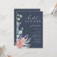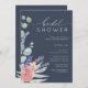 Cette magnifique invitation à la douche nuptiale d'inspiration boho présente des aquarelles originales, conçues pour apporter élégance et romantisme à votre occasion spéciale. Des feuilles d'eucalyptus luxuriants dans une sereine entrelacement vert rustique avec de la lavande délicate et des pivoines florissantes, créant un arrangement floral fantaisiste. Contre un riche arrière - plan bleu foncé, le design offre un contraste saisissant qui renforce son charme sophistiqué et moderne. Parfait pour des fêtes rustiques, de jardin ou contemporaines, cette invitation allie beauté naturelle et charme intemporel. Customisez-le facilement avec les détails de votre événement pour créer un souvenir unique et mémorable pour votre douche nuptiale.
