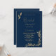 Invitation Fête des mariées luxueuse marine bleu or feuillage