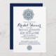 Elégant bleu nuit et blanc réversible vintage mandala fleuri personnalisable invitation à la douche nuptiale.