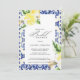 Célébrez la future mariée avec cette élégante invitation à la douche nuptiale de style méditerranéen. Doté de citrons aquarelle, de fleurs bleues douces et d'un script écrit à la main, il est parfait pour une douche nuptiale d'été ou de jardin. Personnalisez le texte facilement pour votre événement spécial. Idéal pour une fête au citron, d'inspiration italienne ou rustique chic.