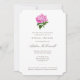 Facile à customiser texte formel et élégant invités invitations pour célébrer la mariée d'être dans le nouveau style traditionnel grand millénaire avec une palette de couleurs féminines de joli rose et vert sur arrière - plan blanc propre et accentué par une illustration antique d'une fleur d'hydrangée fuchsia.