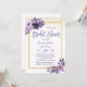 Invitation Fête des mariées moderne de cadre d'or floral viol