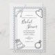 Amusant design moderne noir & blanc invitation à la douche nuptiale avec des graphismes mariages dessinés à la main dans chaque coin. Parfaitement encadré avec un bord de pétoncle blanc avec contour noir. La coordination des polices ajoute à la beauté de ce design.