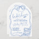 Personnalisez cette invitation mariage de douche nuptiale à l'arc de style moderne et décalé bleu et blanc, avec des détails de typographie manuscrits avec coquette fantaisie cadre bleu ruban français et détails de gâteau de coeur vintage fleuri! RSVP sur le site Web mariage ou scanner registre Les détails du code QR sont à l'arrière pour une conception simple et tout-en-un! Téléchargez facilement votre code QR mariage et modifiez ce modèle d'invitation avec vos détails de mariage pour en faire le vôtre ! Faites défiler la liste ci-dessous pour voir la collection de papier à lettres mariage correspondante. Les demandes de design personnalisées et les questions modèles sont toujours les bienvenues - cliquez sur le bouton "message" ou envoyez un email directement à : contact@figandlilyco.com ♥ Design créé avec amour par Fig et Lily Studios - envoyant des bénédictions et des remerciements!