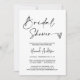 Cette simple carte d'invitation à la douche nuptiale moderne et élégante exsude le raffinement et la beauté dispose d'une belle et magnifique police de calligraphie manuscrite et coeur jumelé avec une police serif classique pour un look vraiment intemporel. Parfait pour votre thème mariage ! Customisez le nom de la mariée et les détails du parti et remplacez la photo par la vôtre, votre code QR, l'URL du site du mariage et d'autres informations de registre des cadeaux pour donner à votre carte d'invitation une touche personnelle agréable. Remarque : Le libellé et le coeur de la "Fête des mariées" ne peuvent pas être modifiés, modifiés ou supprimés. Vous pouvez customiser et personnaliser l'invitation pour répondre à vos besoins. Vous pouvez facilement personnaliser l'invitation avec le texte comme un téléchargement numérique et l'envoyer électroniquement et le partager avec vos invités par SMS, email, ou médias sociaux. Ou vous pouvez également choisir de poster l'invitation concernant vos détails à vos invités. Ou vous pouvez obtenir les deux — invitation imprimée et obtenir l'invitation sous forme numérique en téléchargement instantané.