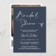 Cette simple carte d'invitation à la douche nuptiale moderne et élégante exsude le raffinement et la beauté dispose d'une belle et magnifique police de calligraphie manuscrite et coeur jumelée avec une police serif classique pour un regard vraiment intemporel sur un arrière - plan bleu marine. Parfait pour votre thème mariage ! Customisez le nom de la mariée et les détails du parti et remplacez la photo par la vôtre, votre code QR, l'URL du site du mariage et d'autres informations de registre des cadeaux pour donner à votre carte d'invitation une touche personnelle agréable. Remarque : Le libellé et le coeur de la "Fête des mariées" ne peuvent pas être modifiés, modifiés ou supprimés. Vous pouvez customiser et personnaliser l'invitation pour répondre à vos besoins. Vous pouvez facilement personnaliser l'invitation avec le texte comme un téléchargement numérique et l'envoyer électroniquement et le partager avec vos invités par SMS, email, ou médias sociaux. Ou vous pouvez également choisir de poster l'invitation concernant vos détails à vos invités. Ou vous pouvez obtenir les deux — invitation imprimée et obtenir l'invitation sous forme numérique en téléchargement instantané.