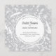 Jolies et élégantes silhouettes botaniques florales de la nature, feuillage blanc, feuilles et fleurs sur un arrière - plan gris argenté. Une jolie invitation à la douche nuptiale coordonnée que vous pouvez modifier pour convenir à votre propre célébration. Art original de Nic Squirrell.