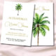 Un élégant palmier aquarelle sur un arrière - plan blanc intemporel. Le Palm est parsemé d'une police moderne couleur or. Faites votre invitation sur mesure en ajoutant vos propres informations facilement à l'invitation personnalisée. Une invitation à la douche nuptiale de qualité avec une gamme d'arêtes de carte à choisir.