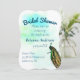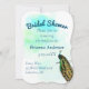 Un paon vintage de D'Orbigny apporte l'élégance à cette invitation à la douche nuptiale turquoise avec aquarelle éclaboussée arrière - plan et texte turquoise.