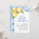Venez goûter la Méditerranée à votre fête avec notre Lemon Mediterranean Main Squeeze Bridal Shower Invitation! Avec ses citrons jaunes vibrants, sa verdure élégante et ses motifs d'inspiration méditerranéenne classique, cette invitation respire le charme et le raffinement. Parfait pour honorer la future mariée dans un cadre ensoleillé et joyeux, il donne le ton d'un événement chaleureux et élégant. Qu'il s'agisse d'accueillir une réunion en plein air ou une fête intérieure intime, ce design saisit magnifiquement l'essence de l'amour et de la célébration.