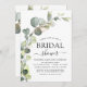 Fêtez la mariée à être en style avec notre magnifique invitation à la douche nuptiale d'eucalyptus. Ce magnifique design présente d'élégants feuilles d'eucalyptus contre un arrière - plan doux et neutre, ce qui en fait le choix idéal pour une douche de mariée à thème botanique. Rendez la journée spéciale de la future mariée encore plus mémorable avec notre incroyable invitation à la douche nuptiale d'eucalyptus. Avec son design magnifique et ses options personnalisables, c'est la façon parfaite de partager la joie et l'excitation des noces à venir avec la famille et les amis. Commandez les vôtres dès aujourd'hui !