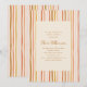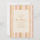 Cette invitation à la douche nuptiale ludique présente des rayures verticales dessinées à la main dans le jaune moutarde, rose roux, terre cuite, et pêche sur un arrière - plan crème douce. Les lignes de galets lui donnent une ambiance rétro-moderne, simple, élégante et parfaite pour une fête de chute ou de sauce. La disposition de l'invitation est propre et facile à lire, encadrée par la bordure rayée vibrante.