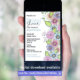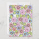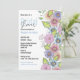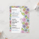 Cette invitation à la douche nuptiale est un mélange harmonieux d'élégance et de beauté botanique. Les bordures droite et inférieure sont ornées d'illustrations de fleurs en fleurs, minutieusement détaillées, qui présentent une palette éclatante de violets, de roses et de verts. Les fleurs, rendues avec un détail minutieux, dégagent un sentiment de fraîcheur et de grâce naturelle. Le texte est joliment placé au milieu de l'exposition florale et capture parfaitement la joie et l'anticipation d'une célébration en l'honneur de la future mariée. Cette invitation à la douche nuptiale est un mélange d'élégance, de charme et de praticité, ce qui en fait un choix parfait pour une occasion spéciale.