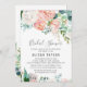 Cette carte d'invitation à la douche nuptiale aux fleurs de pivoine romantique est parfaite pour une douche de mariage élégante. Le design floral présente des fleurs d'aquarelle en cascade blanches, roses, pêche et bleues.