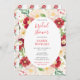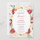 Cette invitation à la douche nuptiale d'aquarelle mignonne et capricieuse présente des fleurs colorées en rouge et crème avec feuillage verdoyant. Le texte combine écriture manuscrite et polices sans serif pour un look élégant et moderne. C'est parfait pour une douche nuptiale de printemps ou d'été.
