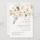 Invitation à la douche nuptiale ArtsApp - roses d'aquarelle crème d'albâtre, feuillage vert luxuriant et marguerites blanches parsemées de poussière d'or. Tous les éléments sont modifiables. Copyright © 2023 ArtsApp™. Tous droits réservés.