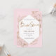 Invitation Fête des mariées rose avec fleurs d'or et Feuilles