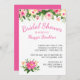 Cette invitation chère présente des fleurs roses et vertes audacieuses et belles avec du texte rose chaud. Personnalisez cette invitation avec les détails de la douche nuptiale.