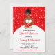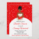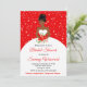 Cette invitation festive et amusante à la douche nuptiale présente une belle mariée en peau foncée dans une robe mariage blanche avec un bouquet de fleurs poinsettia. Dans l'arrière - plan sont des flocons de neige sur un arrière - plan rouge vif. Le texte combine les polices de script et sans serif pour un look élégant et moderne. C'est parfait pour une Fête des mariées à thème de Noël ou d'hiver. Photo de Mujka