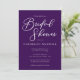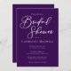 Cette invitation royale à la douche nuptiale violet présente une belle typographie blanche sur une carte violette profonde solide pour une soirée en hiver. Un script minimaliste et une couleur audacieuse font apparaître votre invitation d'évènement nuptial et se démarquer de la foule.