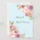 Invitations de douche nuptiale personnalisées en bleu ciel pastel clair et joli rose rustique aquarelle fleurs vintages. Parfait pour un wedding shower de printemps ou d'été.