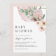 Invités invités à votre événement avec cette invitation de baby shower personnalisable. Il présente de la protéa rose aquarelle, des orchidées, des feuilles de palmiers et des feuilles d'eucalyptus. Personnalisez en ajoutant vos détails. Cette invitation aux baby showers tropicaux est parfaite pour les baby showers d'été et C'est une baby shower fille. Les textes sont entièrement modifiables pour tout événement.
