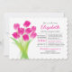 Invitation à la douche nuptiale typographique moderne Tulip rose avec un joli bouquet de belles tulipes roses. Parfait invitation à la douche nuptiale contemporaine pour une douche nuptiale de jardin, douche nuptiale de printemps ou d'été.