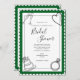 Amusant design moderne noir & blanc invitation à la douche nuptiale avec des graphismes mariages dessinés à la main dans chaque coin. Couleur accent verte. Parfaitement encadré avec un bord de pétoncle blanc avec contour noir. La coordination des polices ajoute à la beauté de ce design.