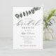 Carte d'invitation à la douche nuptiale moderne avec aquarelle illustration de feuilles d'eucalyptus. Parfait pour votre fête en été.