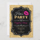 Invitation De La Fête De Hen. Elégant design noir blanc avec parties scintillant en or. Comprend des lèvres roses baiser, confetti et police de script. Idéal pour une célébration élégante. Message-moi si vous avez besoin d'une personnalisation plus poussée.